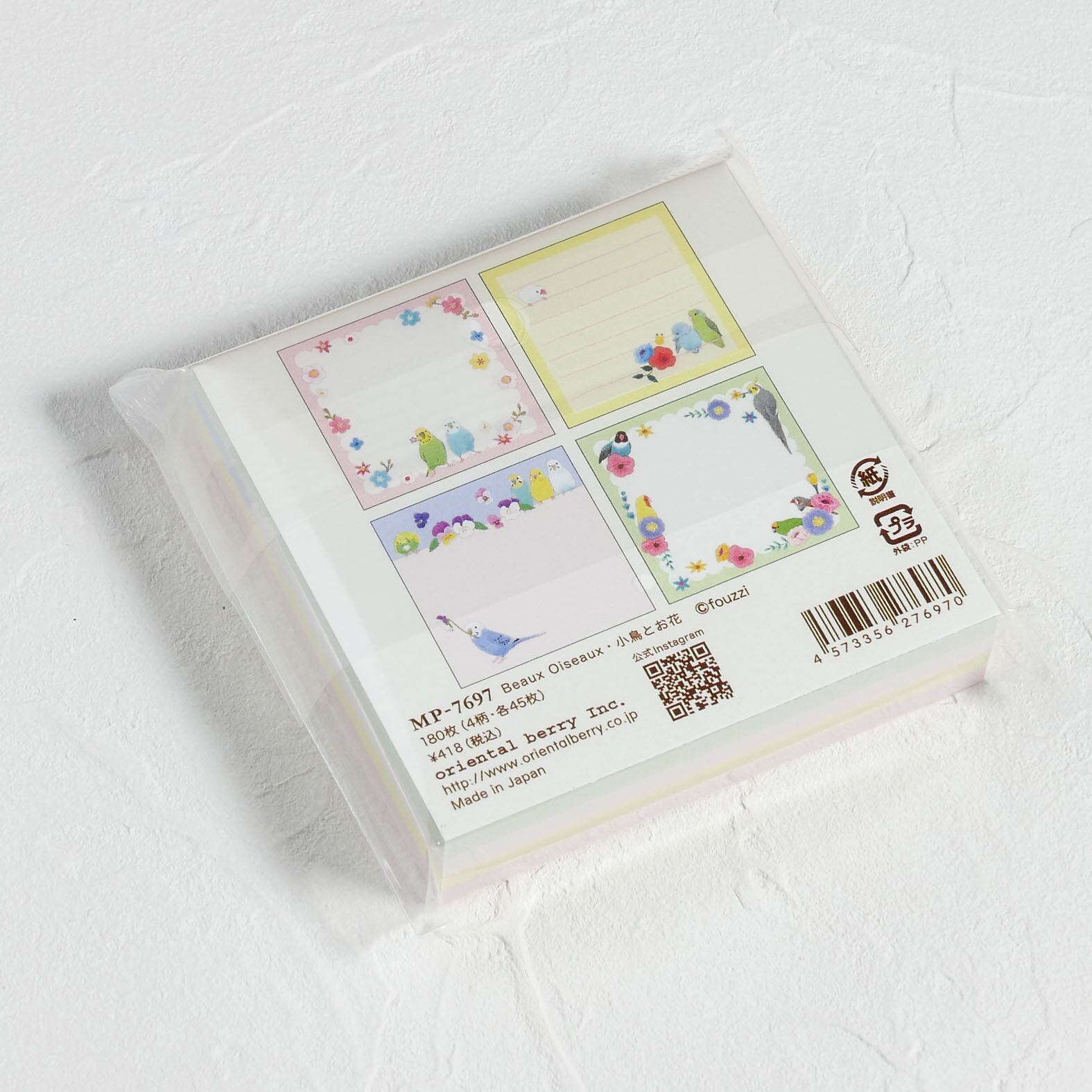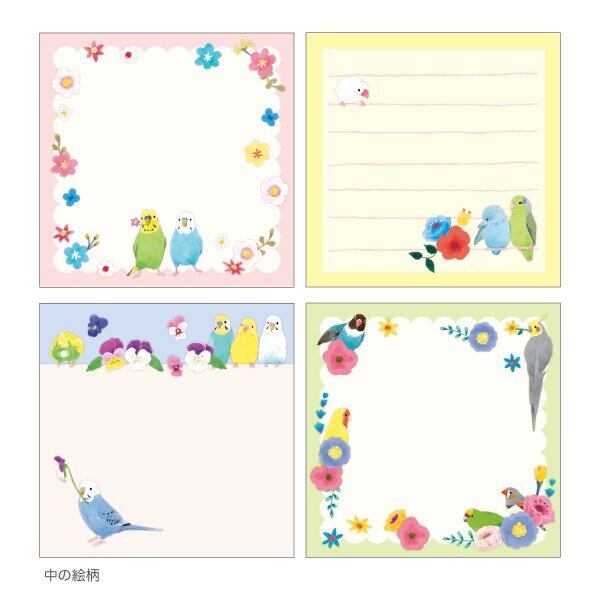 メモパッド|小鳥とお花 4デザイン(合計180枚)